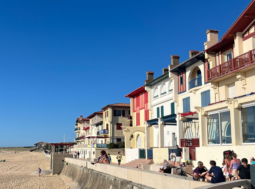 El centro tiene mucho encanto: tiendas de surf, concept stores, cafeterías con buena vibra. Lo normal es acabar el día tomando algo en Café de Paris, y si el grupo se anima, seguimos en Rock Food o el Hotel de la Plage, donde suele haber música en vivo y ambiente relajado.